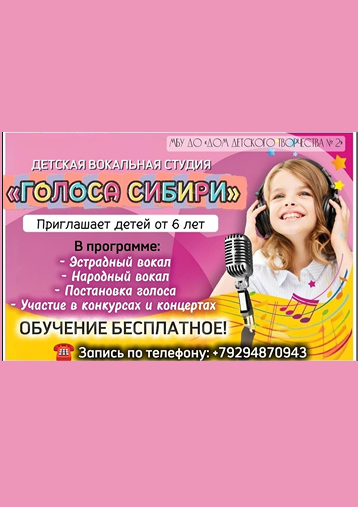 Спешим сообщить, что с 10 сентября на базе нашего Дома творчества начинает свою работу детская вокальная студия «ГОЛОСА СИБИРИ»