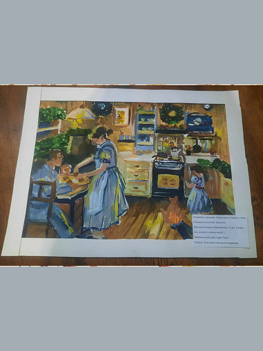 Обучающаяся творческого объединения «Мир изобразительного искусства» (педагог Кухтенко Анастасия Андреевна), Маслова Елизавета, приняла участие в краевом конкурсе «Семья.Традиции.Россия».